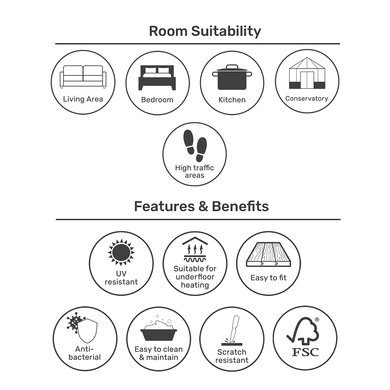 | Rooms Suitable For | Kitchen, living areas, conservatory, high traffic areas |