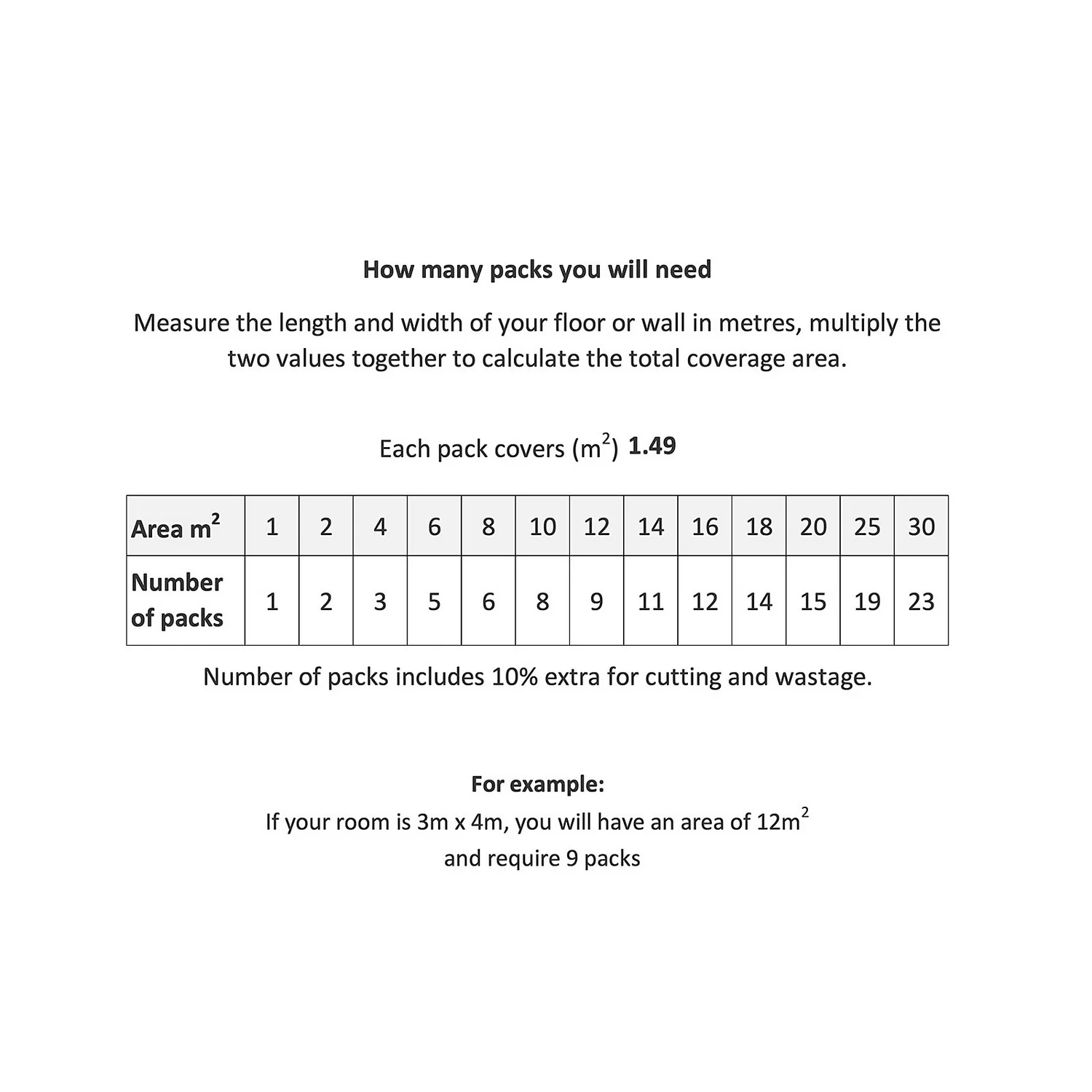 | Coverage Per Pack | 1.496m2 |